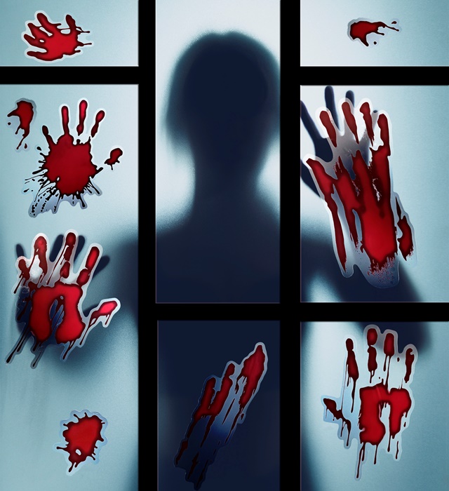 "SKELETON HAND CANDLE HOLDER WITH LIGHT-UP BLEEDING CANDLE" 20 cm