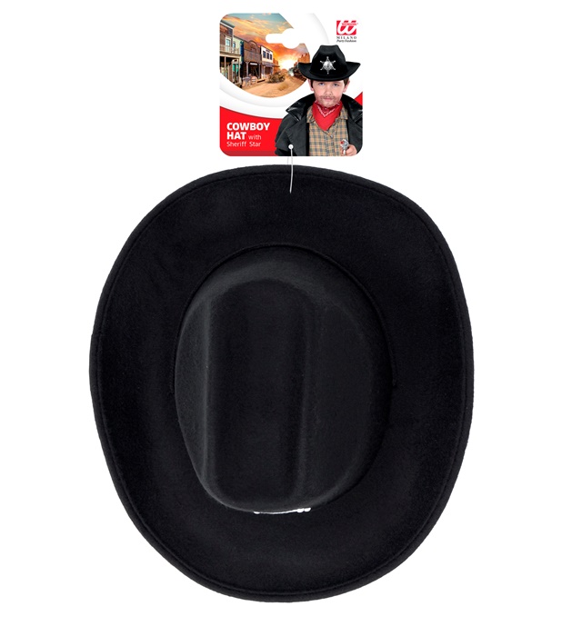 "REAL-LOOK BLACK COWBOY HAT WITH SHERIFF STAR" child size
