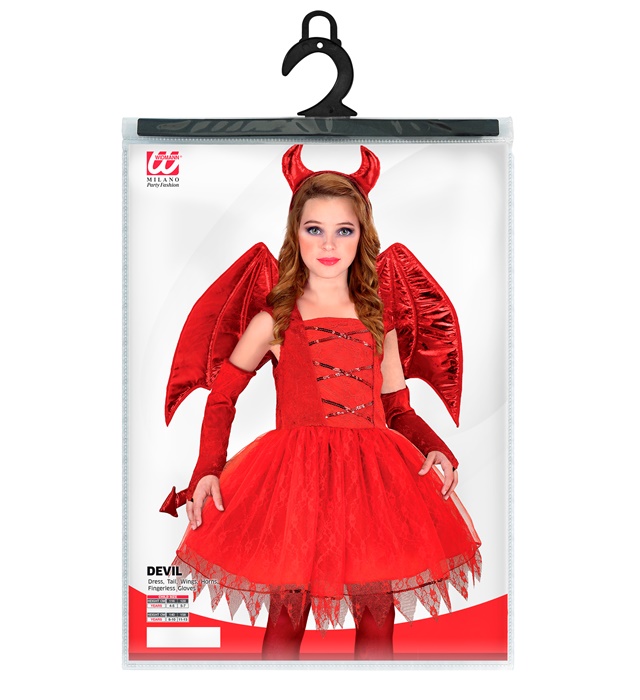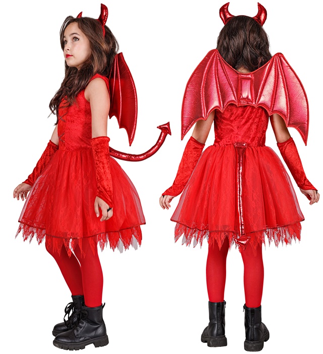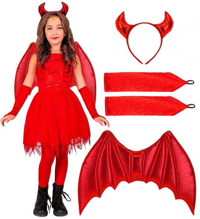"DEVIL" (dress, tail, wings, horns, fingerless gloves)