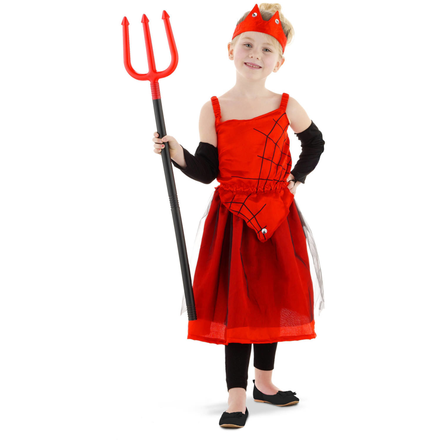 Devil Dress with Spiderwebs 4 pieces for Girls - Size 116-134. Contents: Dress, headband, sleeves. Colour: Red. This dress is perfect for Carnival, Halloween, Theme parties. Clothing size specification: 116-134, M. This garment is made of polyester and has been treated to be fire reststant.