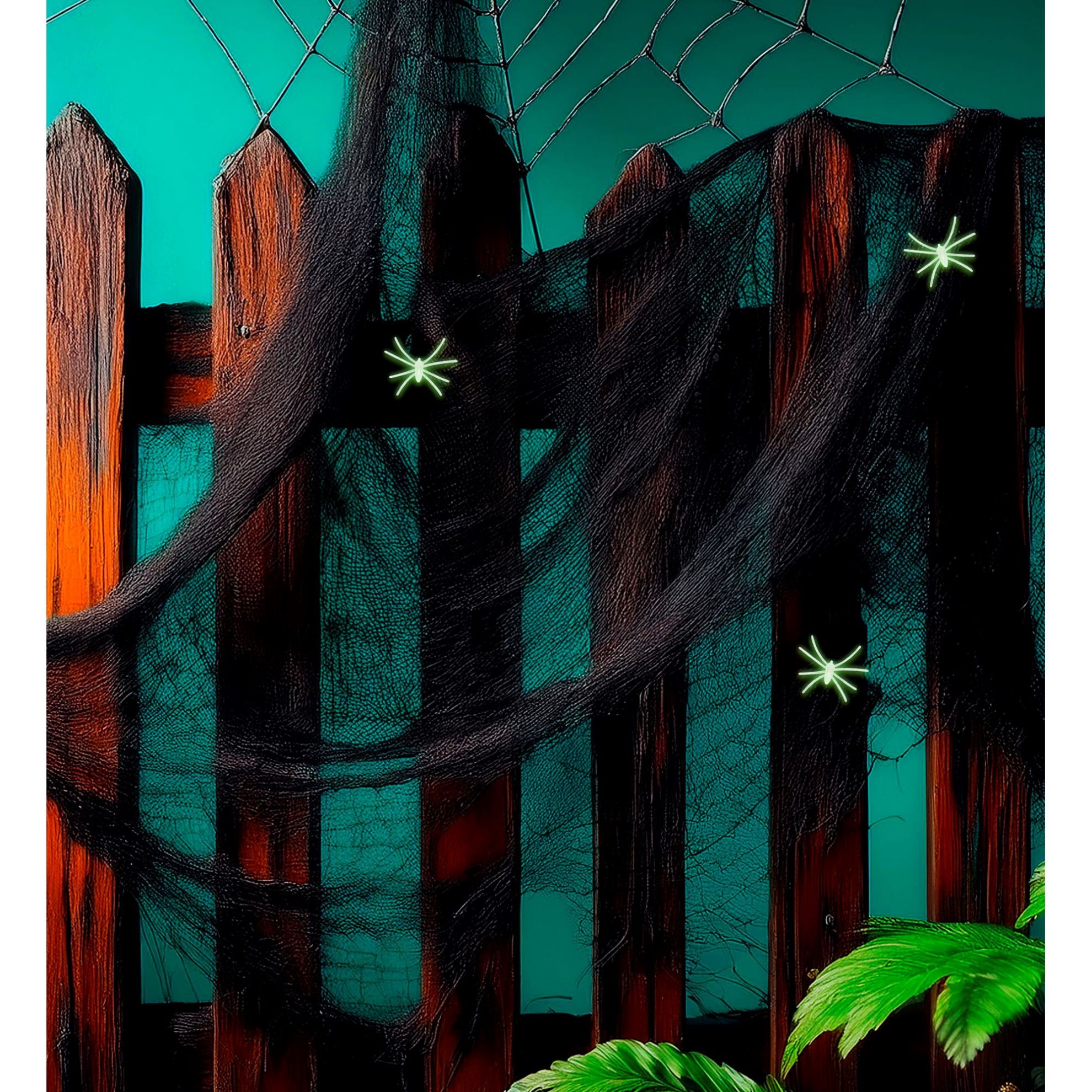 "50 g BLACK SPIDERWEB WITH 3 GLOW IN THE DARK SPIDERS"