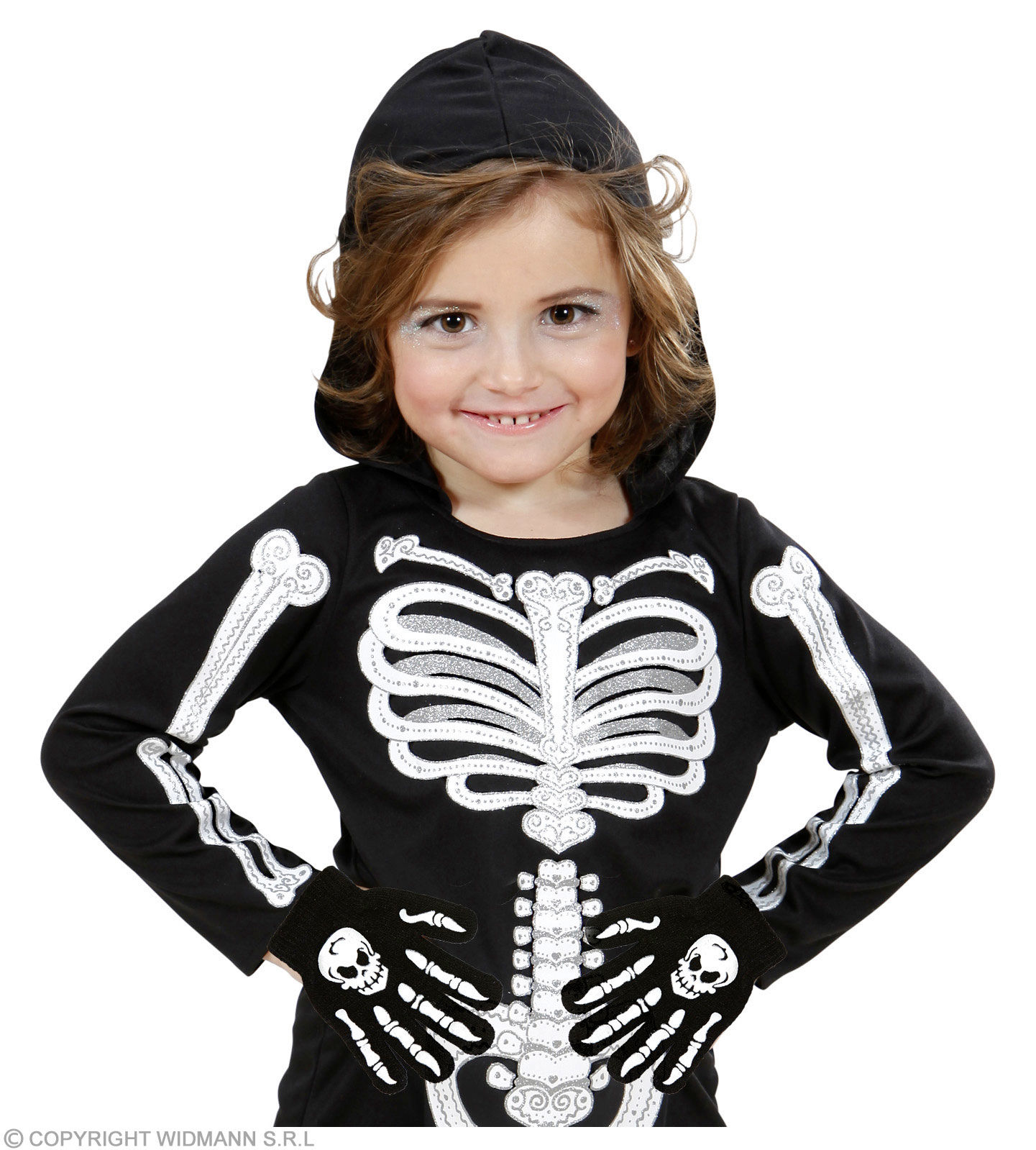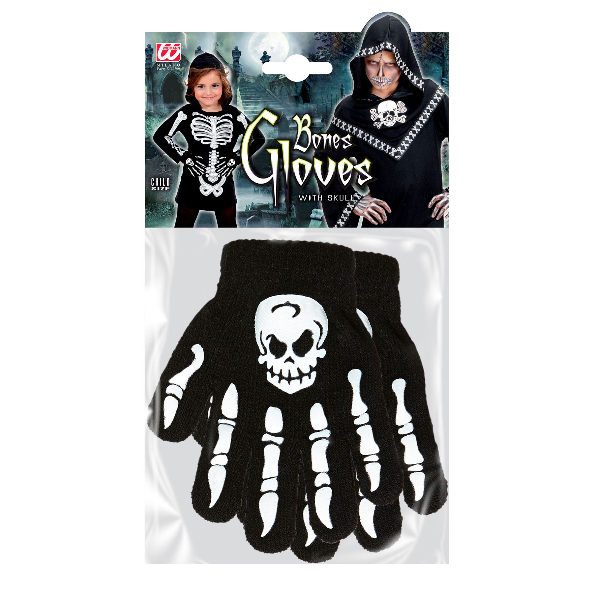 Bones gloves with skull - child size (One Size Fits Most Children)