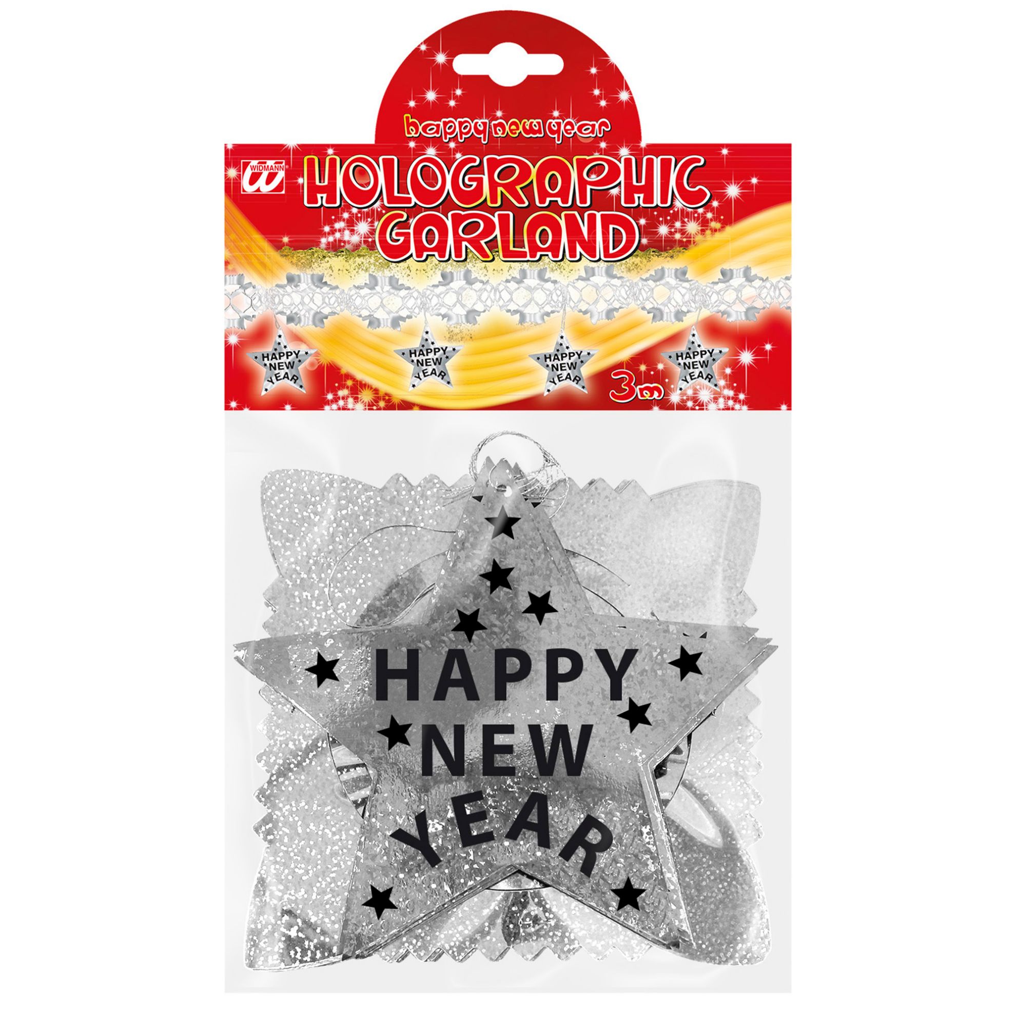 "HOLOGRAPHIC SILVER HAPPY NEW YEARGARLAND" 3 m