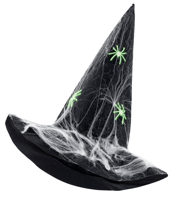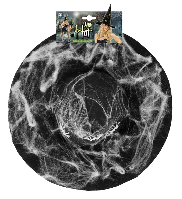 "DELUXE FELT WITCH HAT WITH SPIDERWEB & GLOW IN THE DARK SPIDERS"