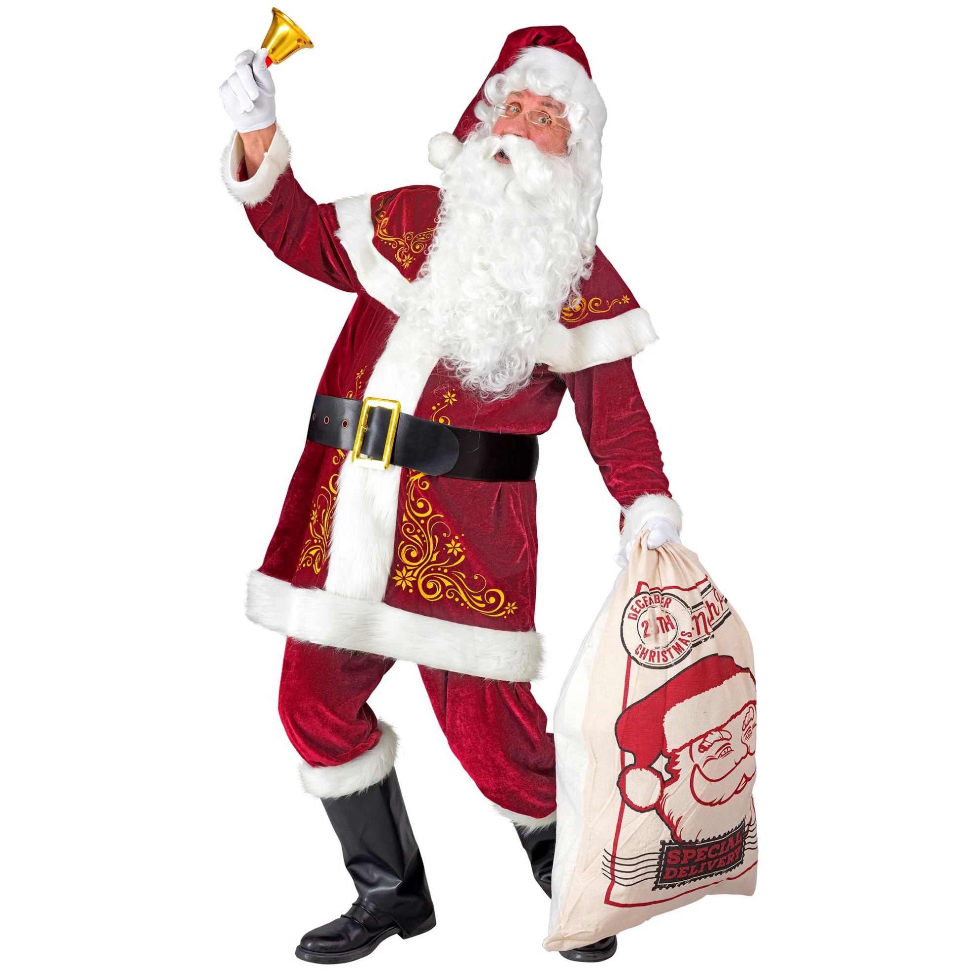 "SANTA CLAUS" (coat with capelet, hat, pants, belt, boot covers)