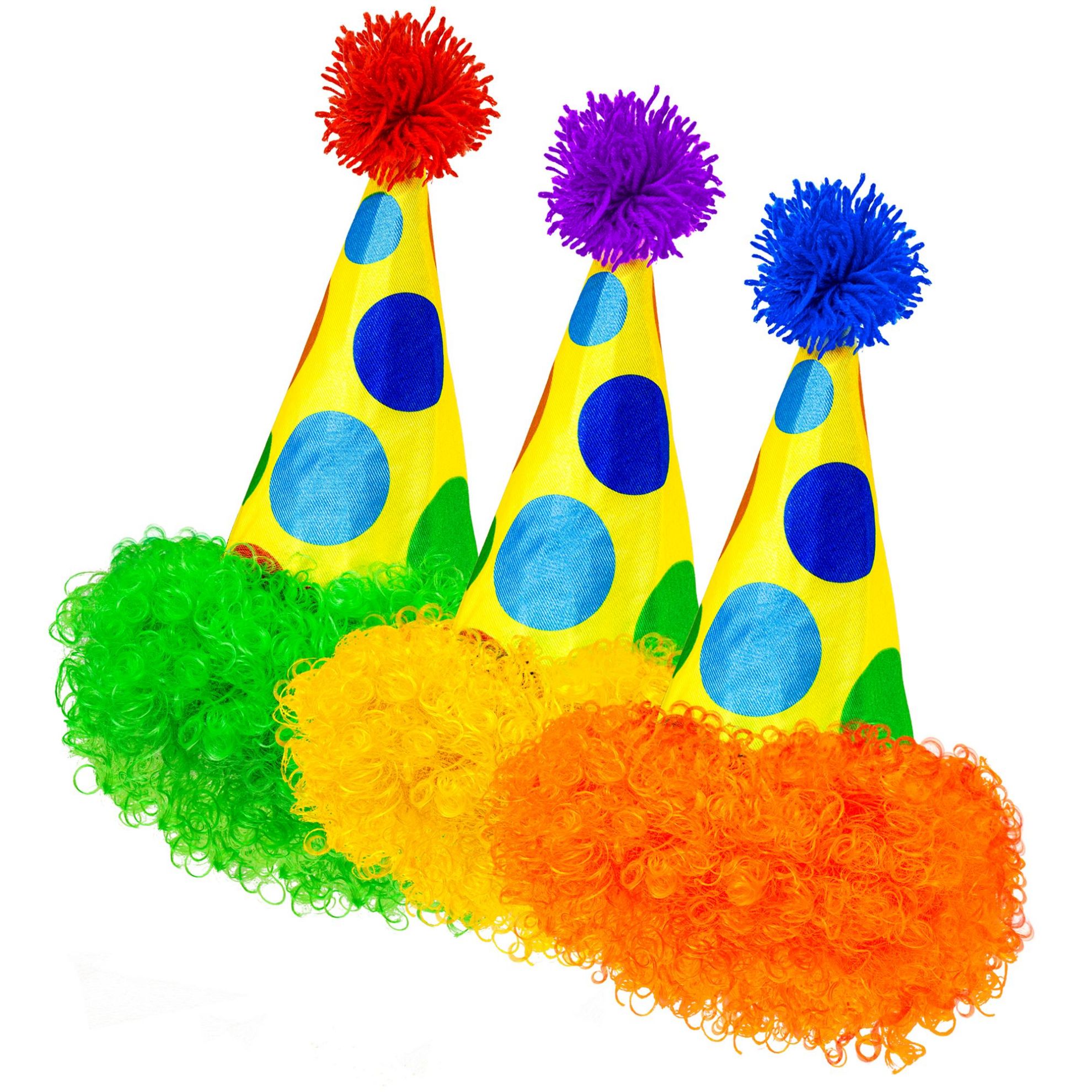 "CLOWN HAT WITH CURLY WIG" 3 colors ass.