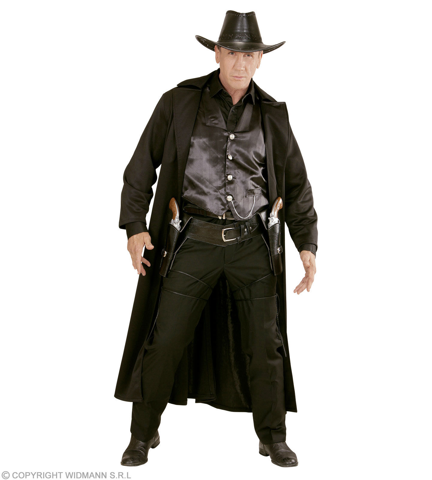 Leatherlook Black authentic western double holster and belt