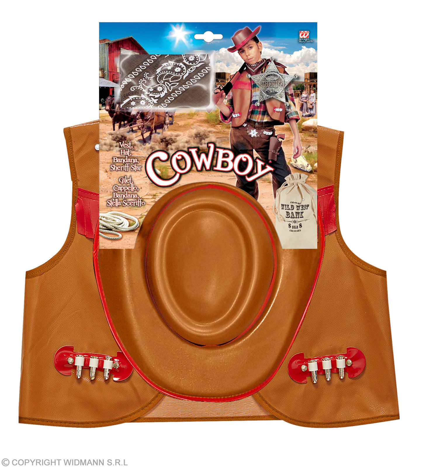 Cowboy (vest, hat, bandana, sheriff star) (140 cm / 8-10 Years)