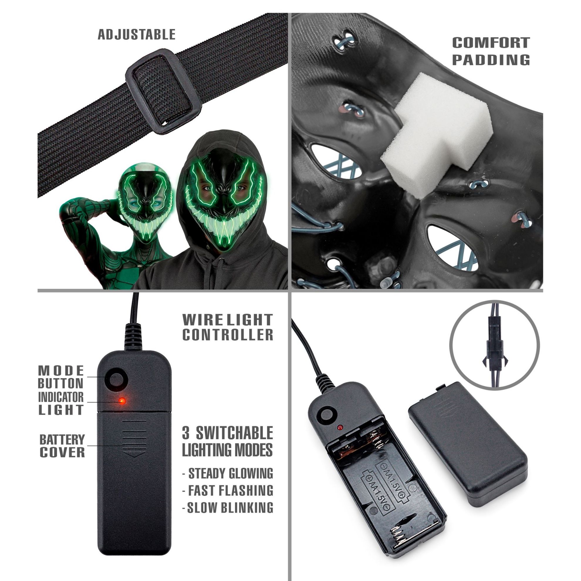 "GREEN LED MONSTER MASK"