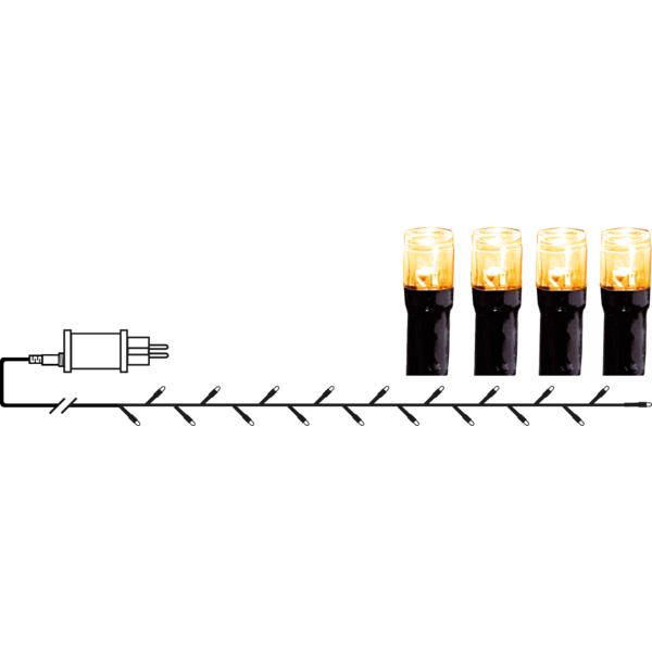 Light chain with 80 golden warm white LED bulbs with beautiful light. The chain is about 5,6 meter long with a spacing of 7cm between the bulbs. Perfect for your garden.