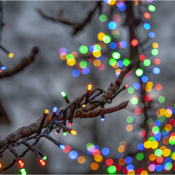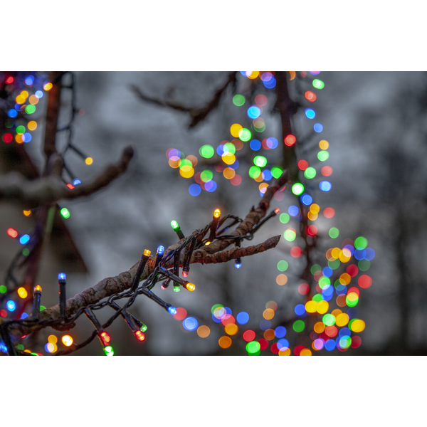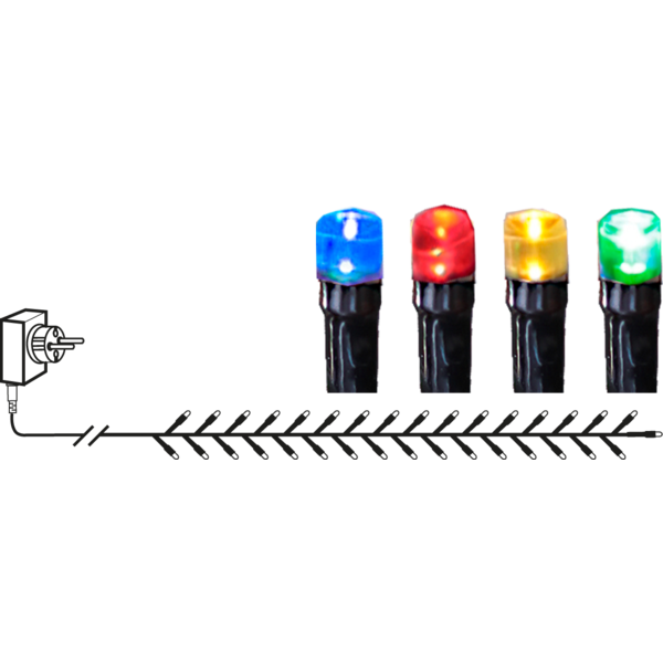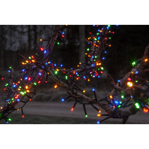 Light chain with 1500 multi coloured LED that gives a cozy light. With 2 cm spacing between the bulbs the light chain is about 30m long. Prefect for your garden or patio. The light chain has a build-in timer and 8 function chaser box in the transformer. Choose between steady or different chasing effects. Comes with a practical box for easy storage when not in use.