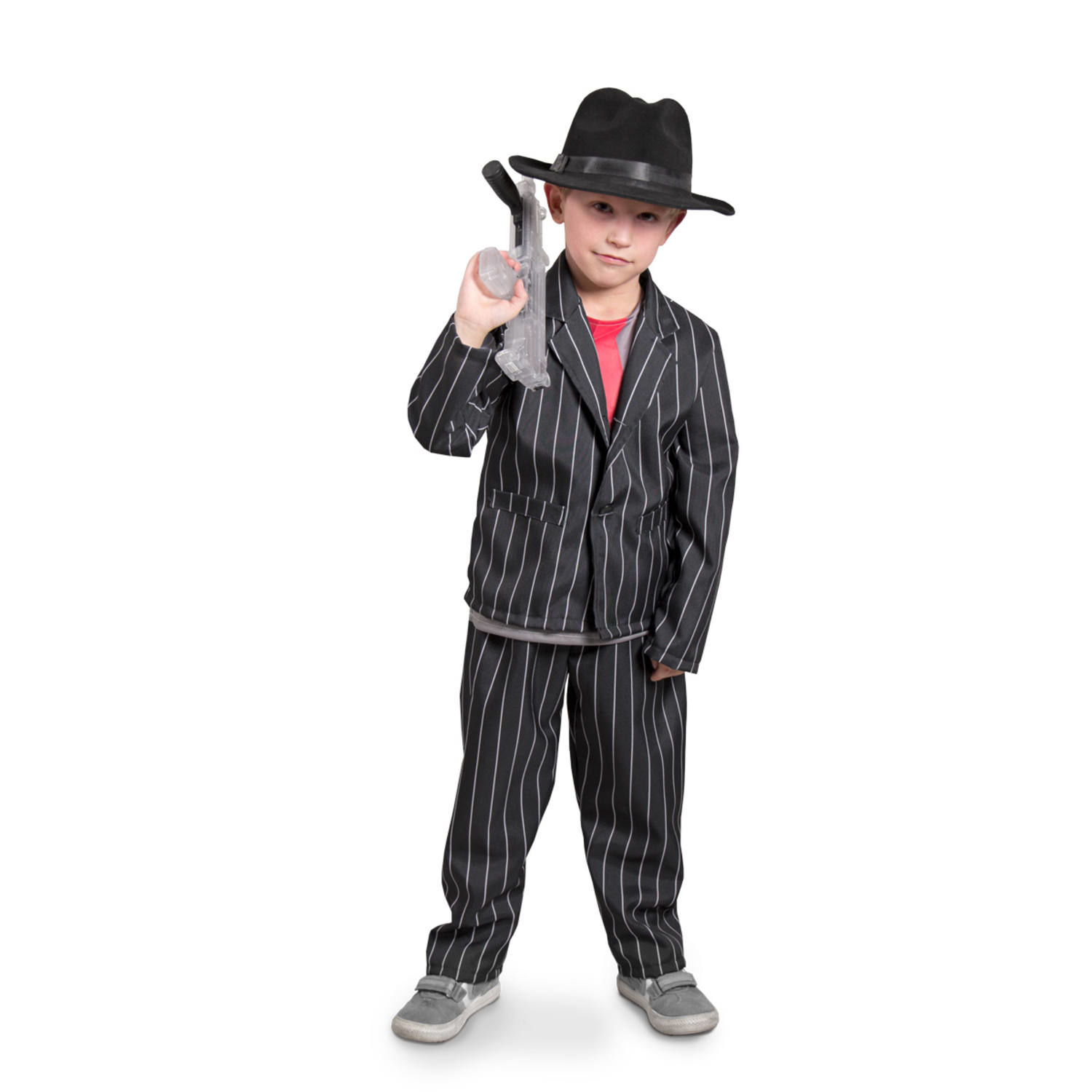 Mafia Costume - Children's size M. Contents: Jacket, Shirt and Pants. Colour: Black. You can wear the costume nicely during Carnival, Theme parties, Children's party. Clothing size specification: 116-134, M. The costume is made of polyester.