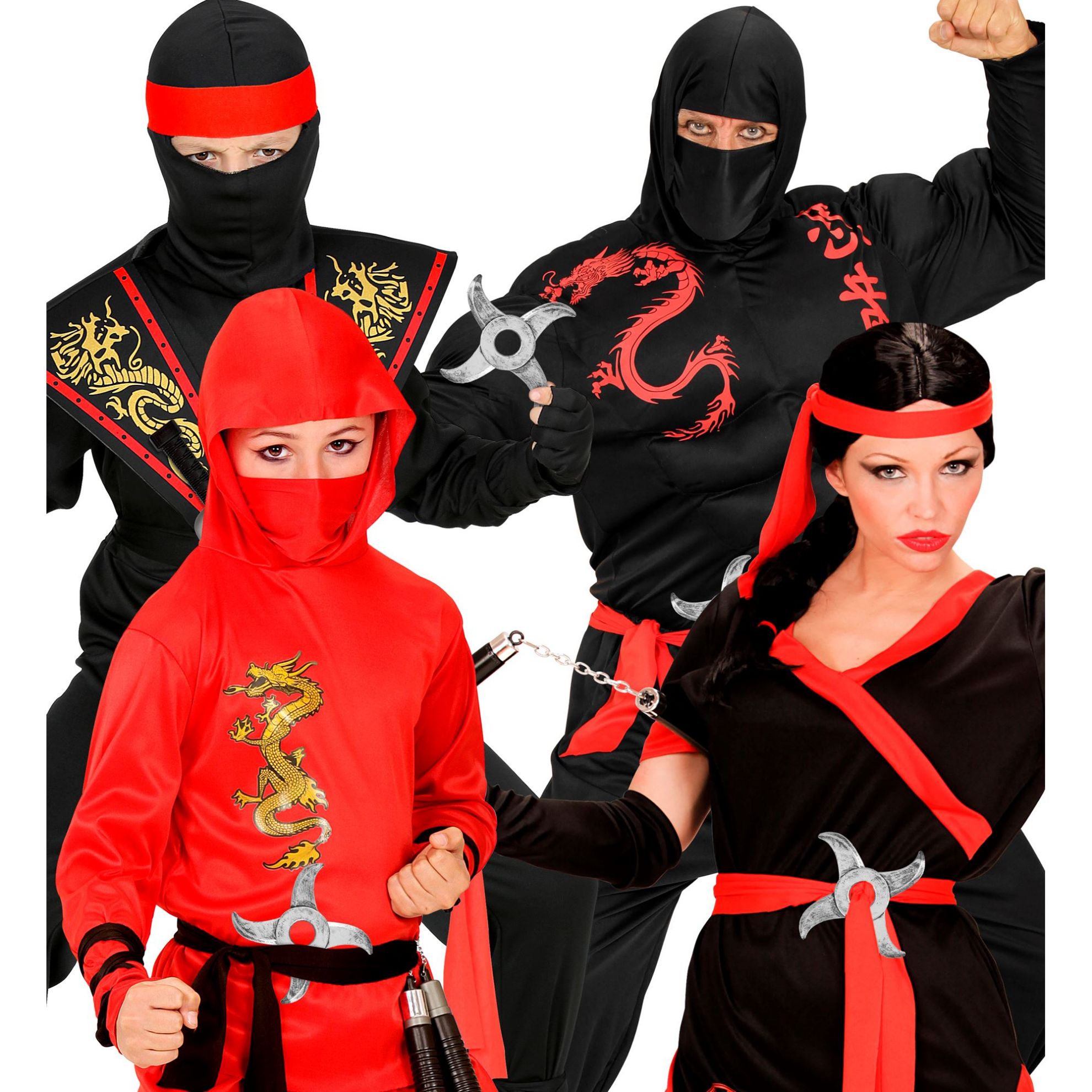 Red dragon ninja (hooded coat, pants, belt, face mask, arm & leg ties) (128 cm / 5-7 Years)