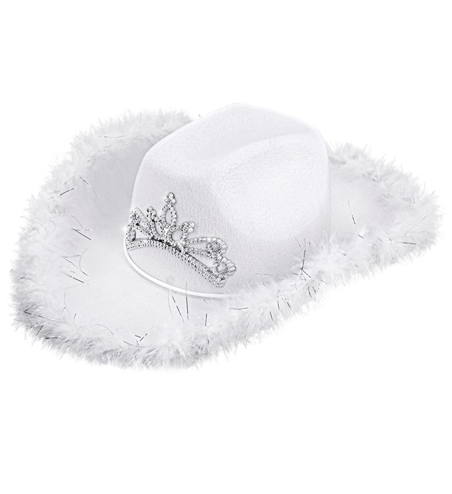 "WHITE COWGIRL HAT" with tiara & marabou trim with silver tinsel - in ..