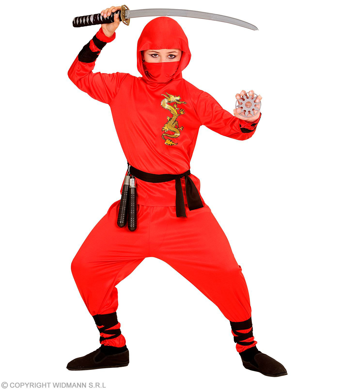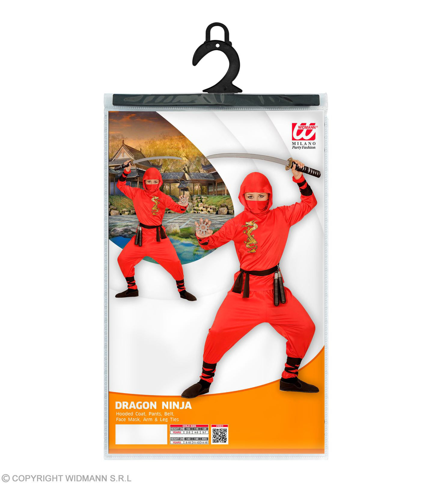 Red dragon ninja (hooded coat, pants, belt, face mask, arm & leg ties) (128 cm / 5-7 Years)