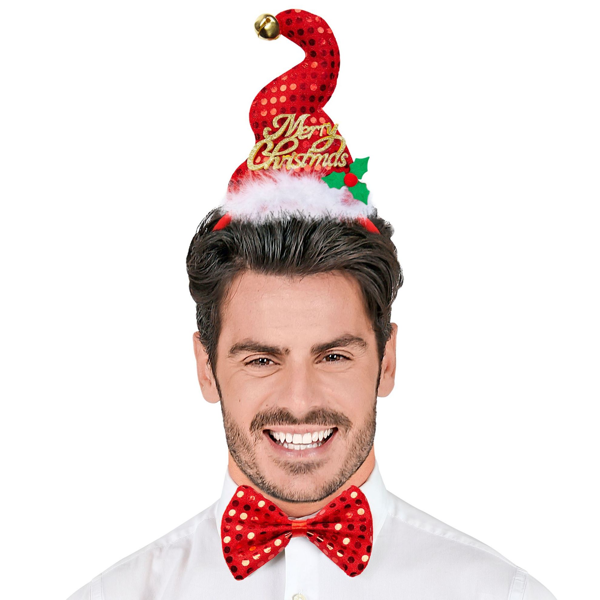 "SEQUIN MINI SANTA HAT WITH JINGLEBELL & BOW TIE"