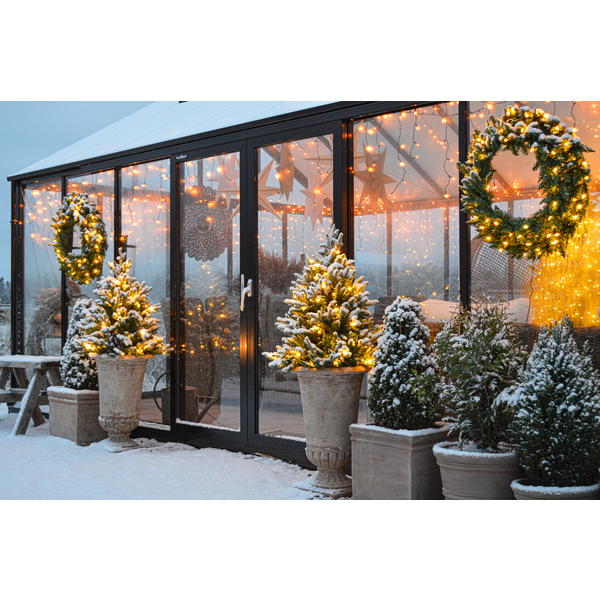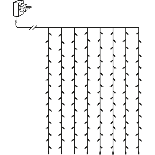 Curtain light with 120 LED bulbs in golden warm white that gives a beautiful light. Curtain size is 1,3x2m. Perfect for decoration in your garden or on your house.