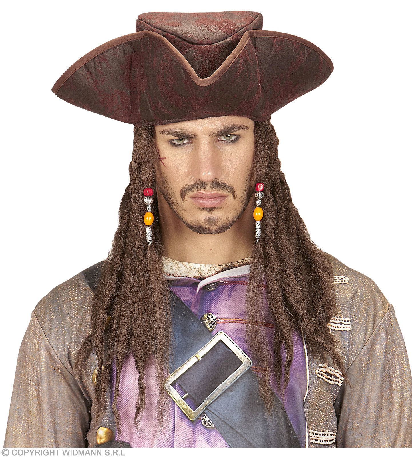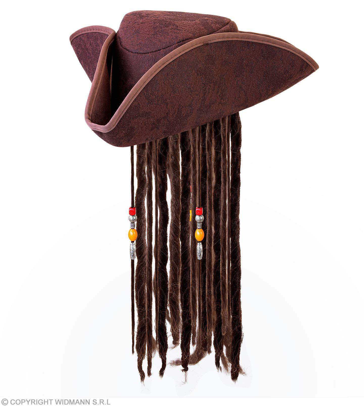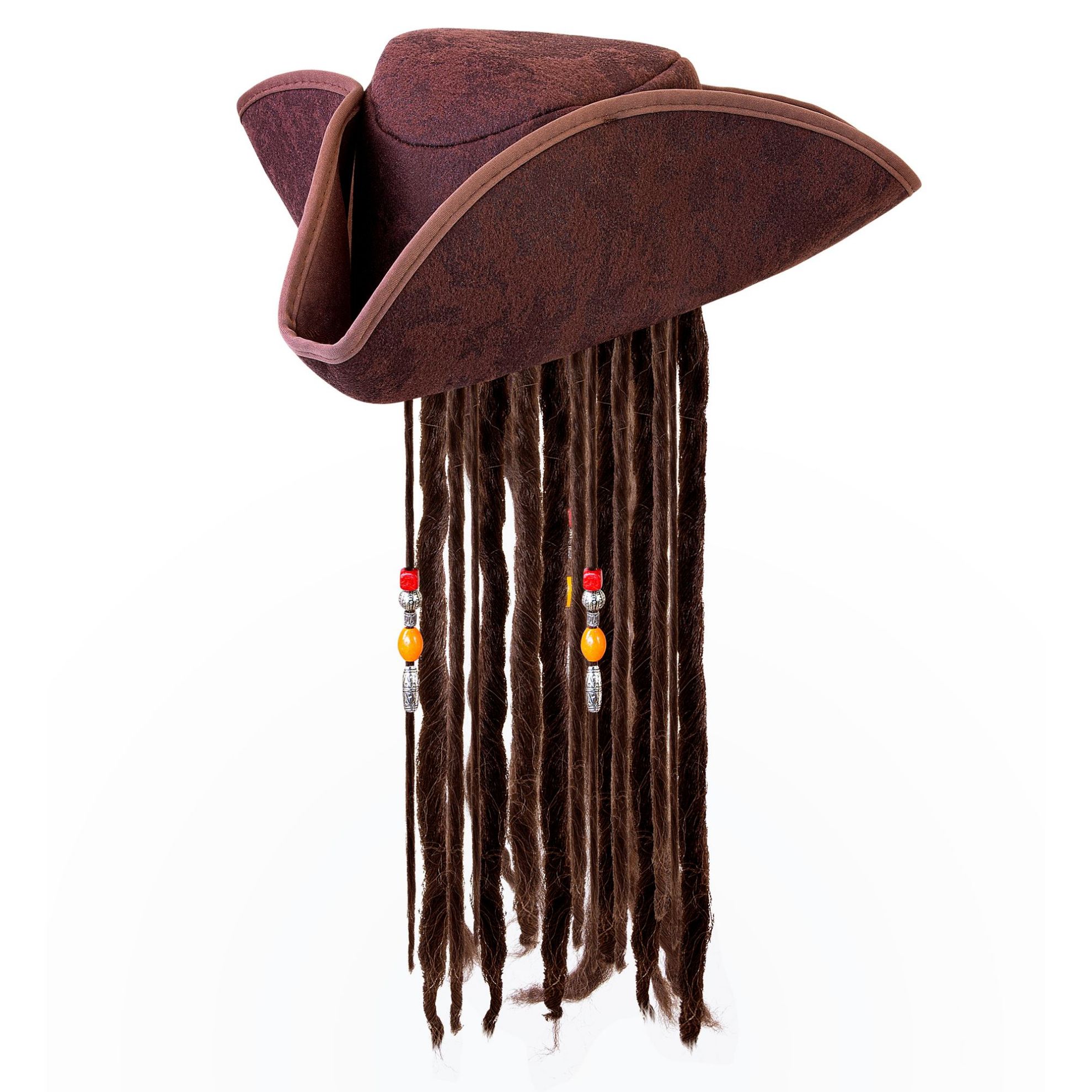 Leather look pirate tricorn with dreadlocks