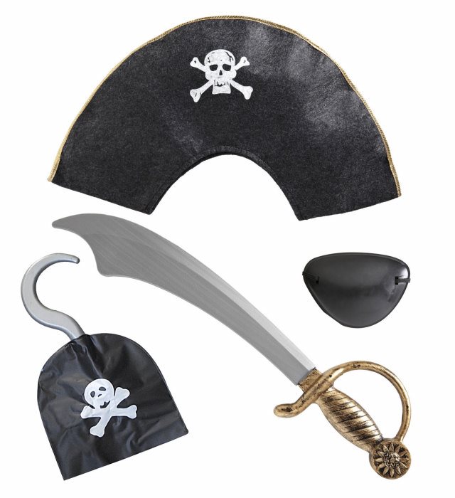 "PIRATE SET" (hat, cutlass, eyepatch, hook)