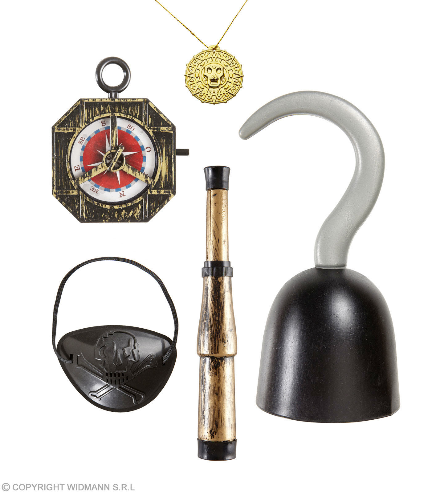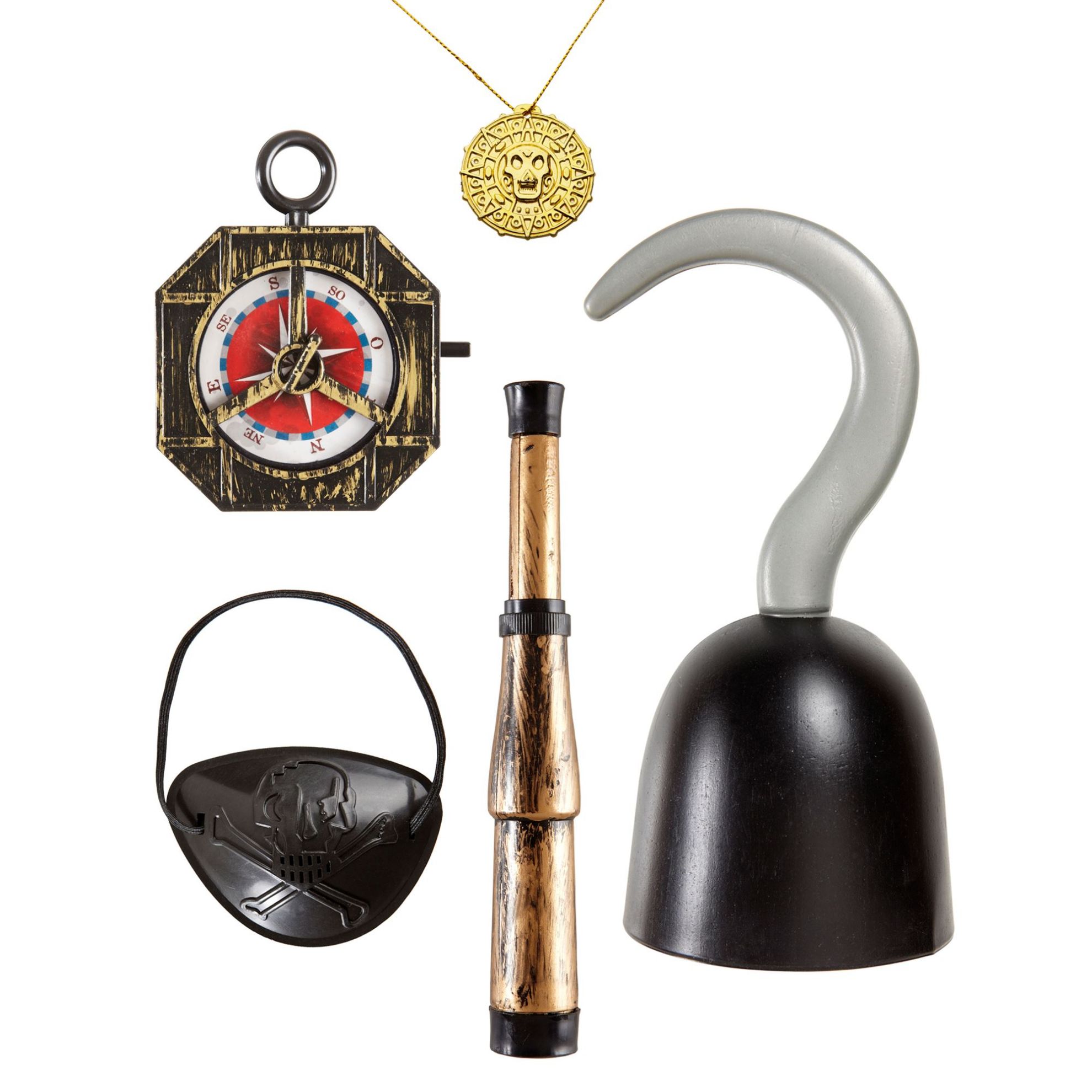 Pirate accessories (hook, compass, spyglass, eyepatch, necklace with medallion)