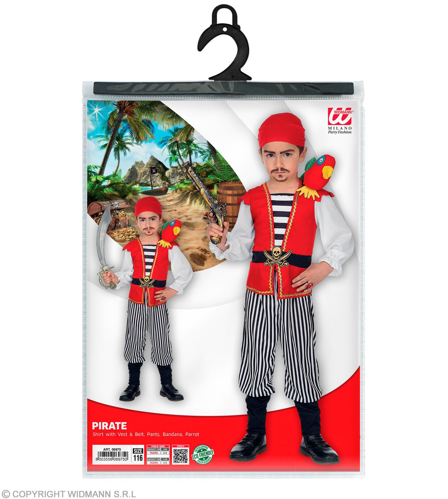 Pirate (shirt with vest & belt, pants, parrot, bandana) (104 cm / 2-3 Years)