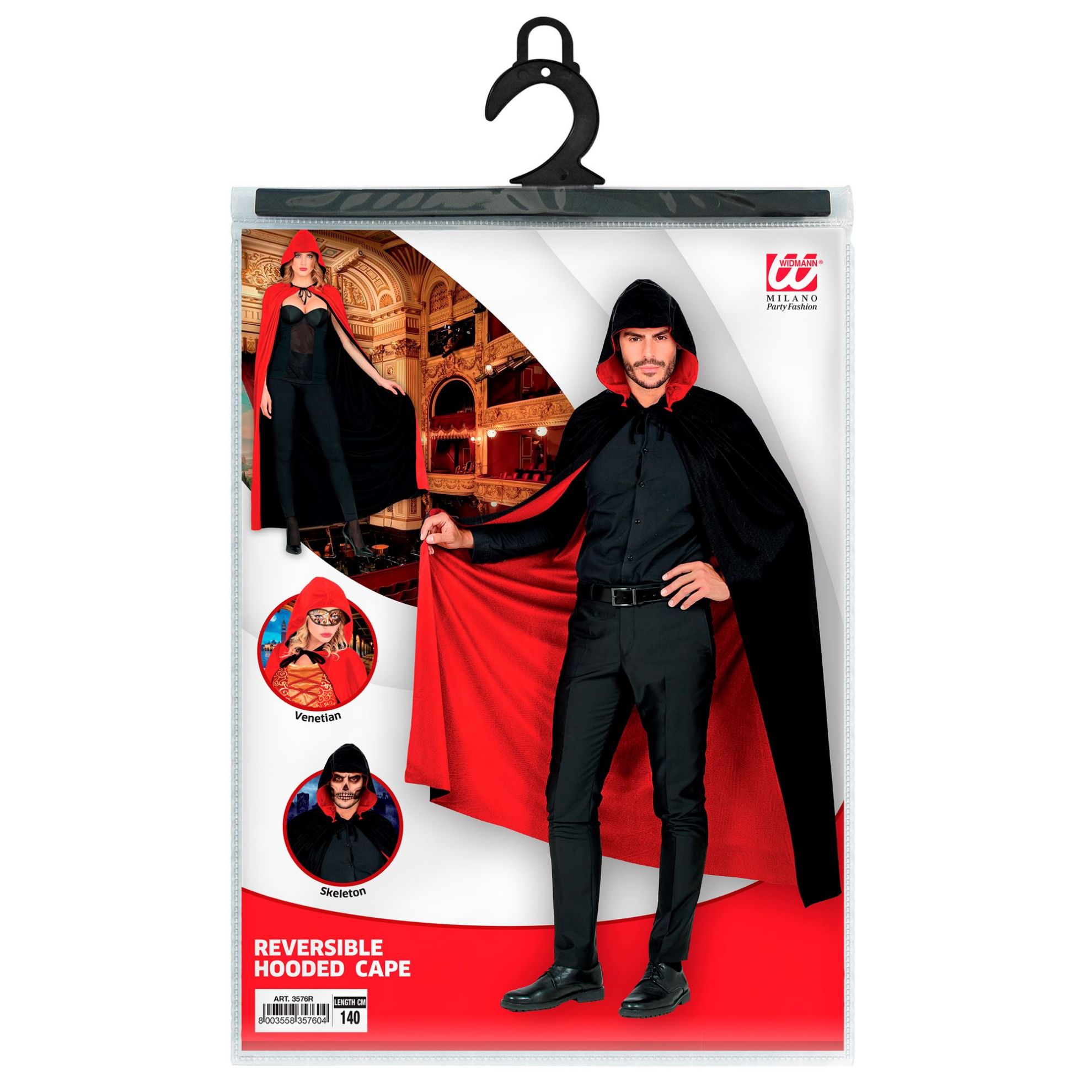 "BLACK/RED REVERSIBLE HOODED CAPE"140 cm