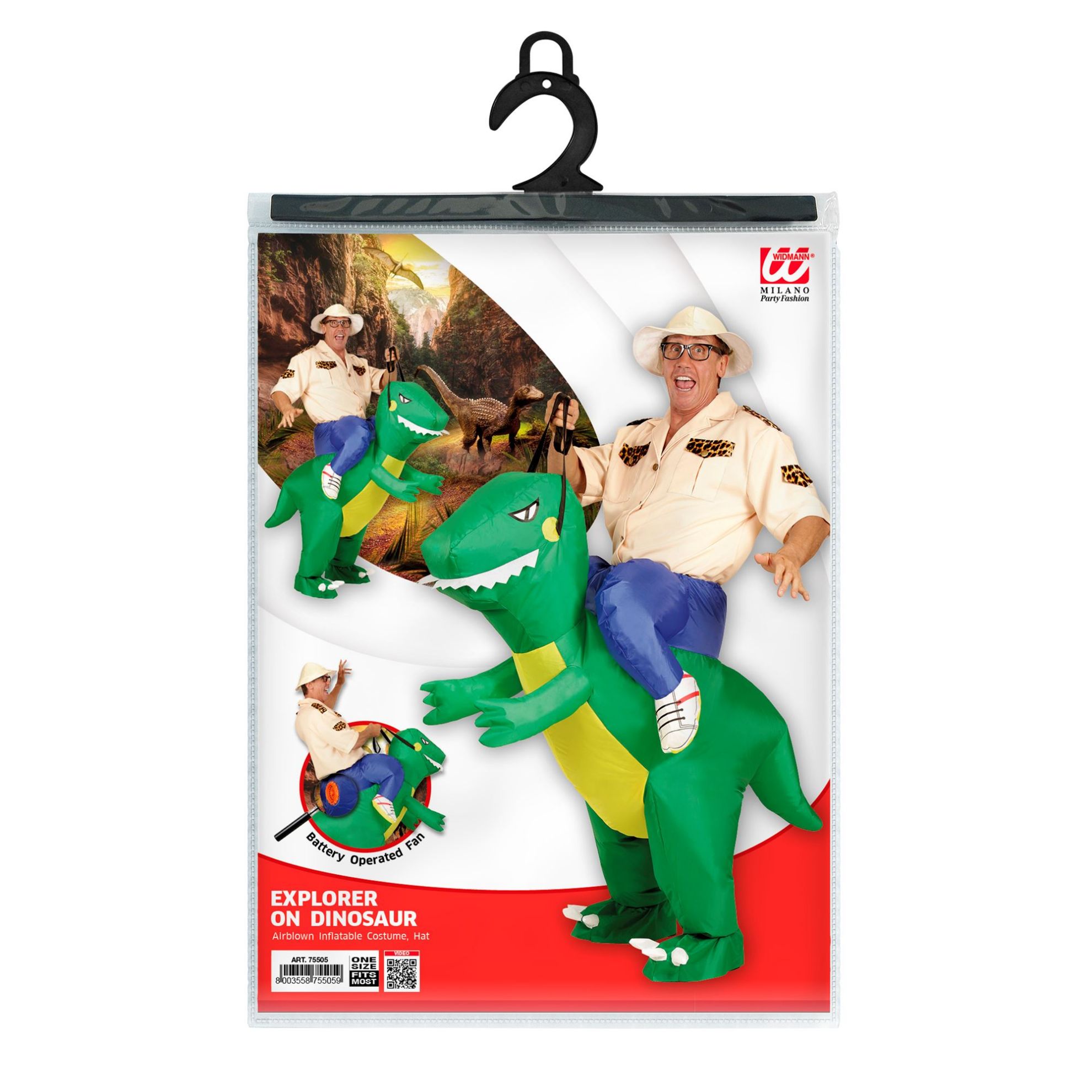 "EXPLORER ON DINOSAUR" (airblown inflatable costume, hat)