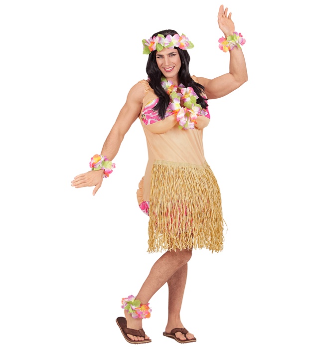 "HAWAIIAN BEAUTY" (fat woman overalls with bikini & hula skirt)